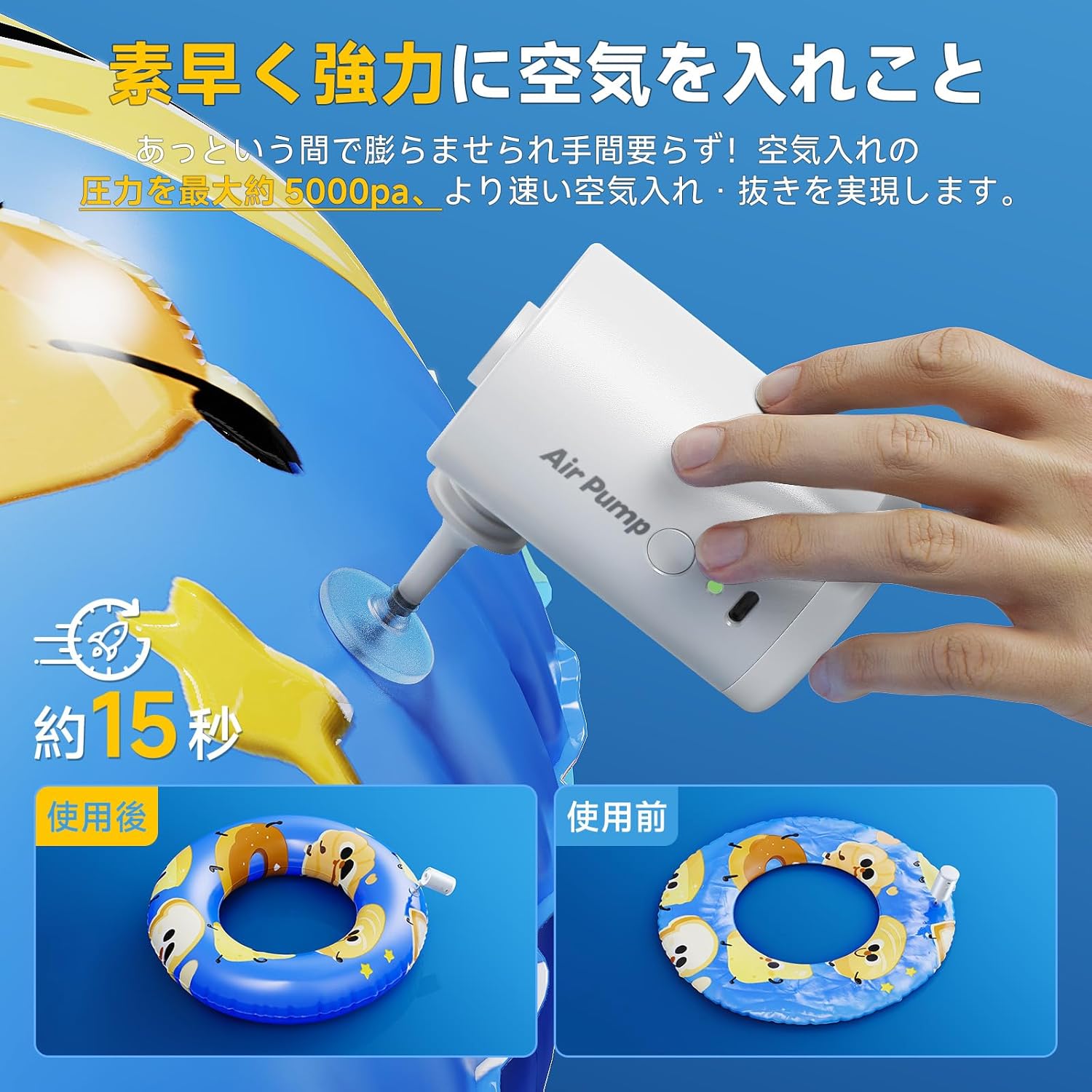 - 給気&排気両対応&5種ノズル:エアベッド、浮き輪、真空袋など幅広く対応。